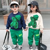 くまさんスエットセットアップが登場です。カジュアルながらも、どこか愛らしいデザインが特徴的です。トップスはくまのイラストが入ったプリントが施され、ボトムスはゆったりとしたシルエットで快適な着心地を実現しました。
