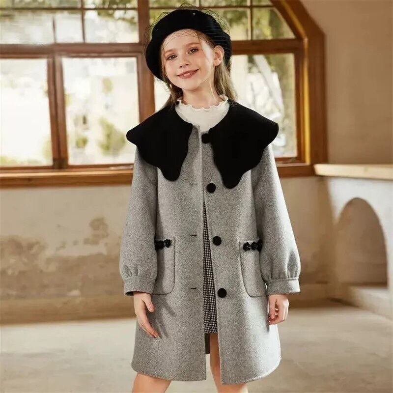襟付きグレーウールコート