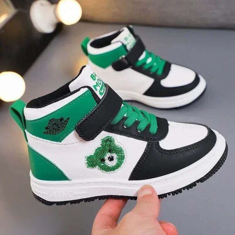 キュートなくまのイラストが目を引くキッズくまのハイトップスニーカーです。