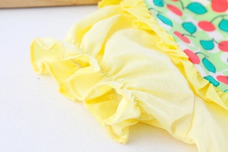 トップスはフリルデザインがポイントで、首元を華やかに演出します。