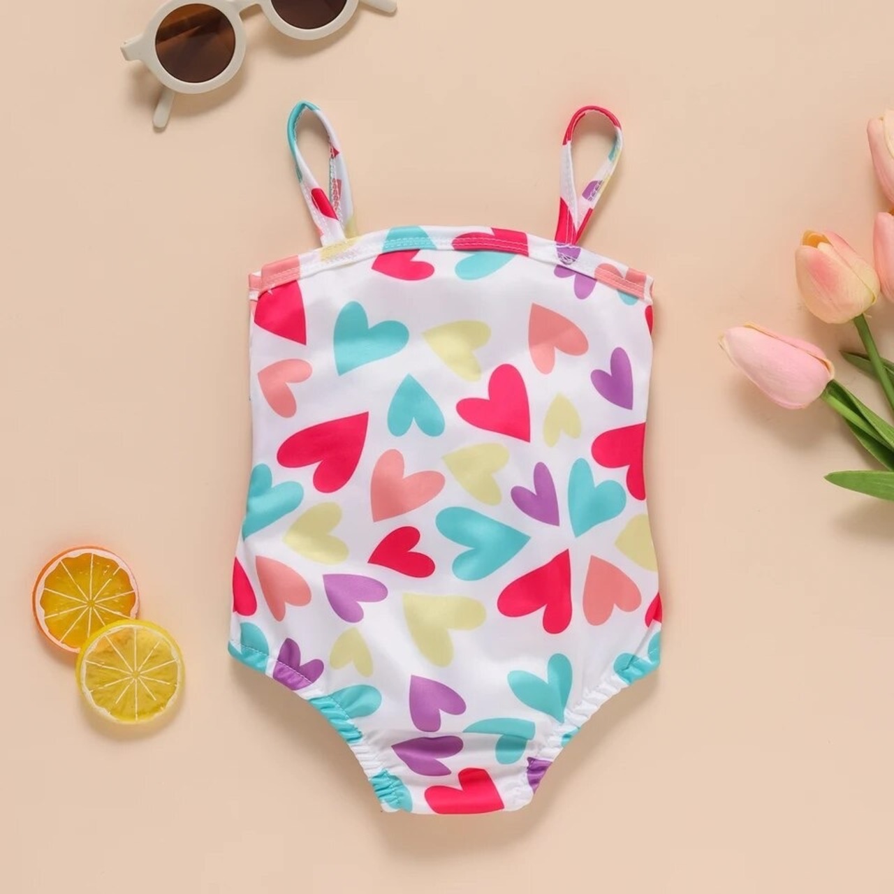 心躍る夏のビーチやプールにぴったりなフリル付きハートの水着。