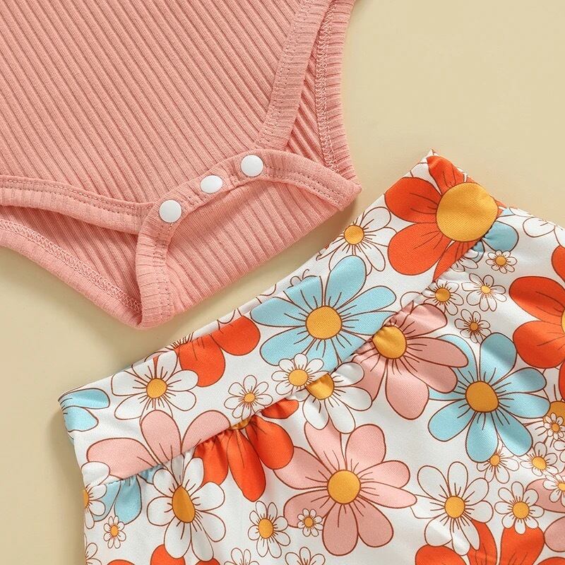 フリフリとお花のデザインが可愛い、キャミソールロンパース。