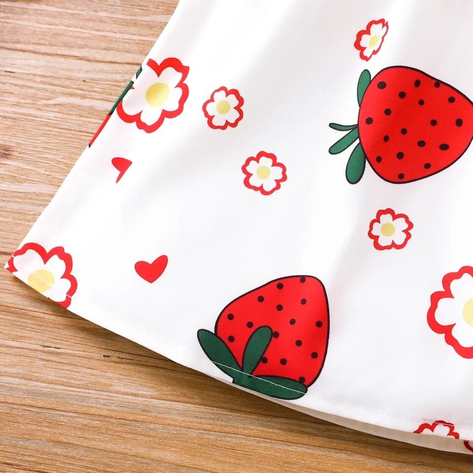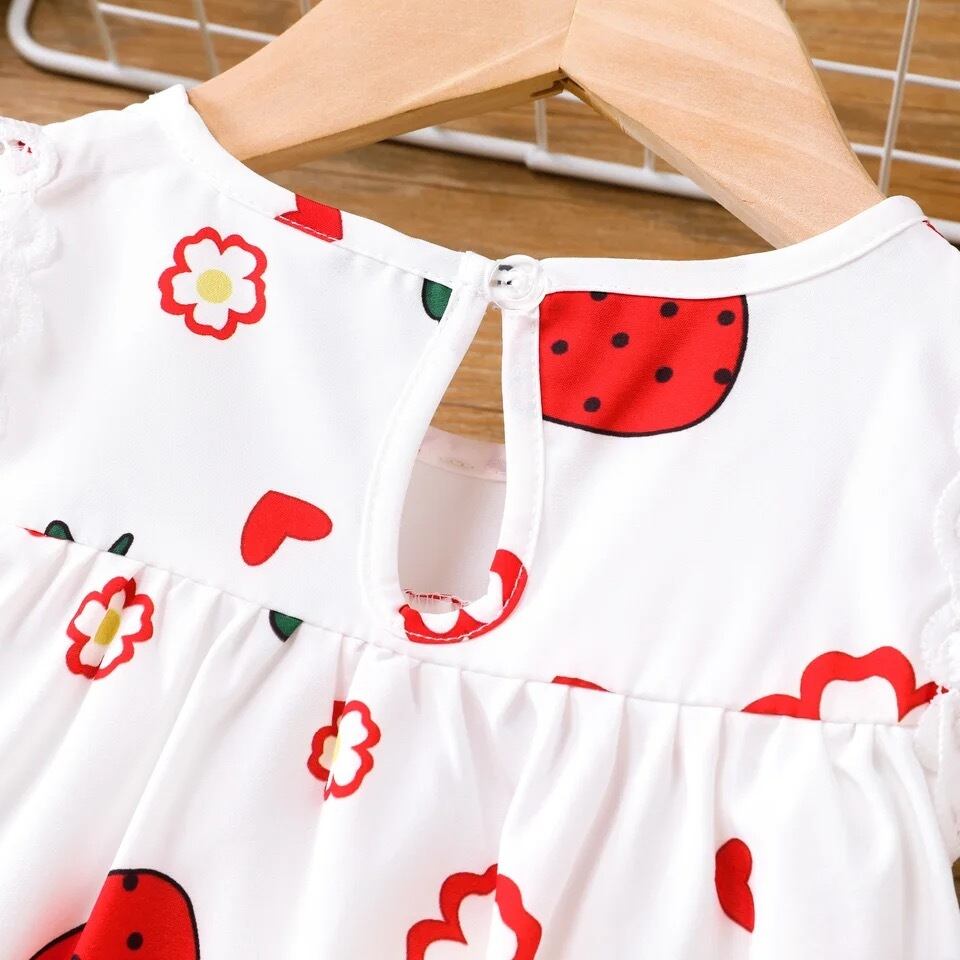 袖のレースと、甘くて美しいいちごとお花のプリントで、女の子らしさを引き立てます。